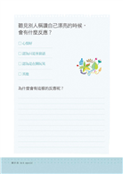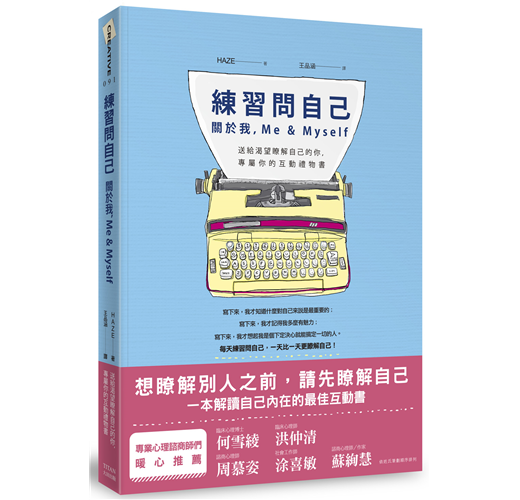 名人推薦:專業心理諮商師們暖心推薦 (依姓氏筆劃順序排列) 臨床心理博士 何雪綾 臨床心理師 洪仲清 諮商心理師 周慕姿 社會工作師 涂喜敏 諮商心理師/作家 蘇絢慧 「我覺得這本書很適合給迷失自我的讀者看,裡面的問題能讓人很詳細地瞭解自己,是從來都沒想過的自己,這本書可以讓許多人找到自己。」──大學生 佳純 「短短幾行字的提問,也許同樣是你心底對自己最深的疑問;這本書帶領你思考並記錄下最真實的自己!」──大學生 薏岑 「我開始學會問自己問題,讓瞭解自己變成一種習慣,我真的很慶幸在茫茫書海中,遇見了這本...