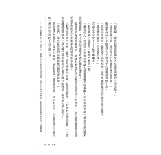 「話說回來勉哥,從我進公司到現在,你的聖誕節從來沒有過計畫不是嗎?」