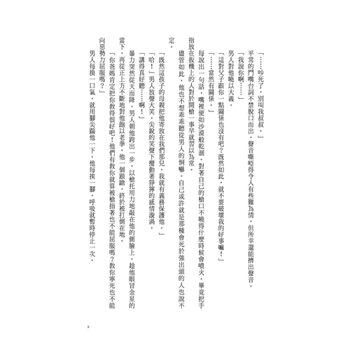 每說出一句話,嘴裡便如沙漠般乾涸。對著自己的槍口不曉得什麼時候會噴火。畢竟把手指放在扳機上的人對於開槍一事早就習以為常。