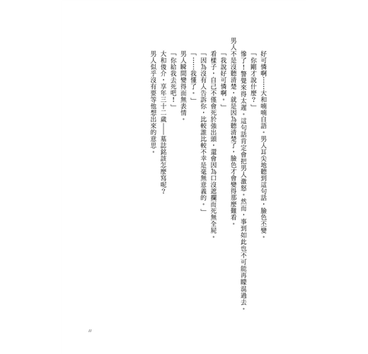 慘了!警覺來得太遲。這句話肯定會把男人激怒。然而,事到如此也不可能再矇混過去。男人不是沒聽清楚,就是因為聽清楚了,臉色才會變得那麼難看。
