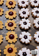 1把奶油酥餅麵團用桿麵棍桿成5mm厚,用直徑4cm的菊形模型裁切。鋪排在烤盤上。