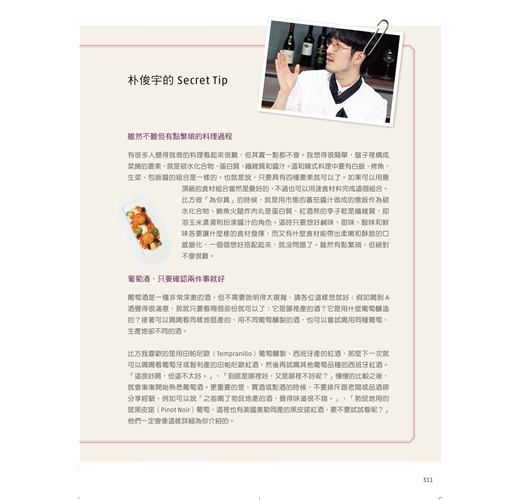 因此,就算比賽只有短短的15分鐘,主廚們也絕不會放棄用蔬菜熬煮高湯、切水果代替砂糖做出甜味等各種費工的作業,因為這些步驟都必定是有原因的。尤其這本書可說將節目中繁複的過程去蕪存菁,詳細記錄了每道食譜和料理的照片,希望各位可以利用這本集結了主廚們知識與祕訣的15分鐘食譜,在家做出美味的菜餚。節目播出後,主廚們更特別花時間為各位提供料理時的小祕訣,這也是書中值得注目的地方。真心希望各位讀者可以透過這本書,讓自己變身成為家中的五星級主廚,體會一下把家裡變成高級餐廳的樂趣。