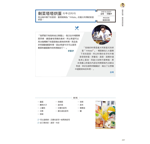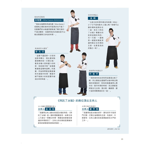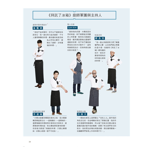 雖然勝敗的結果意義不大,但總是能形成趣味盎然的對決,還有真情流露的歡笑與感動,這正是《拜託了冰箱》特有的魅力。這本書並不只是單純的食譜。閱讀每道食譜的時候,準時收看節目的各位應該也會想起每位嘉賓的冰箱和他們的故事。就像一本讓人回想起當時主廚們的熱情洋溢、歡笑與感動的文字作品集。