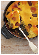 ③ 將壓成粉狀的全麥餅乾鋪在①的鑄鐵鍋底,再將②倒入其中。