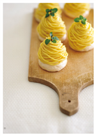 ② 將融化後的奶油與細砂糖、香草莢,綜合攪拌成奶油狀,再加入酸奶油調和,依照順序加入蛋、蛋黃、檸檬汁、玉米澱粉。