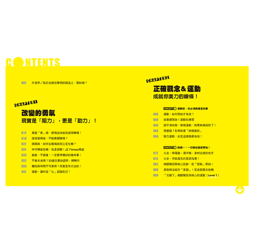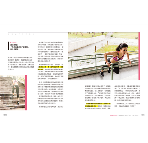 【CHAPTER1】 改變的勇氣 現實是「阻力」,更是「助力」! 臭臉「煮」婦,感情走味給我當頭棒喝! 誰說當媽後,不能勇闖職場? 媽媽族,如何在職場找到立足生機? 中年轉業危機,也是契機!JZ Fitness萌起 創業、不創業,一定要準備好的幾件事! 不會太老嗎?33歲念書拼證照、搏轉行 麵包與時間不可兼得?其實是有方法的! 運動,讓你從「心」認識自己! 【CHAPTER2】 正確觀念運動 成就你美力的線條! ◆CONCEPT1 運動前,你必須搞懂這些事 運動,如何開始才有效? 分不清有氧、無氧運動,夠累夠喘就對了! 由基礎開始!...