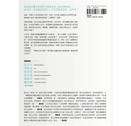 聖元這本書是對土耳其陌生的華語讀者取得入門資訊的佳作,我佩服這位年輕人能如此深入地觀察土耳其,尤其當前西方歐美文化在國際時尚大道上塞車之際,台灣的下一代何不思考選擇一條比較幽靜的道路,進入土耳其,重新認識東方吧!