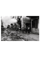 我心驚膽戰地看到一棟建築物抵擋不住戰火,裡頭防守的土耳其兵與居民如洪水湧出。婦女和兒童也開始跑了出來。我記得自己放下相機,衝過火線,把一個三歲小孩抱到安全的地方,他母親在他身旁尖叫。幾年後,我發展出一套守則,好在戰場上把自己拉回去拍照。但當天工作時,我沒有理論可循,一切全憑直覺。