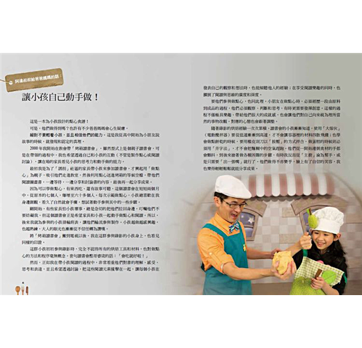 這是一本為小孩設計的點心食譜!專門為小孩量身打造,可是,他們做得到嗎?也許有不少爸爸媽媽會心生疑慮。絕對不要輕看小孩,並且要相信他們的能力。食譜原本就有與之連結配合的圖畫書,所以在點心送進烤箱的等待空檔,爸爸媽媽不妨就陪陪他們讀本圖畫書,聊一聊,然後翹起二郎腿,等他們喜孜孜地端出剛烤好的點心來孝敬你們吧!