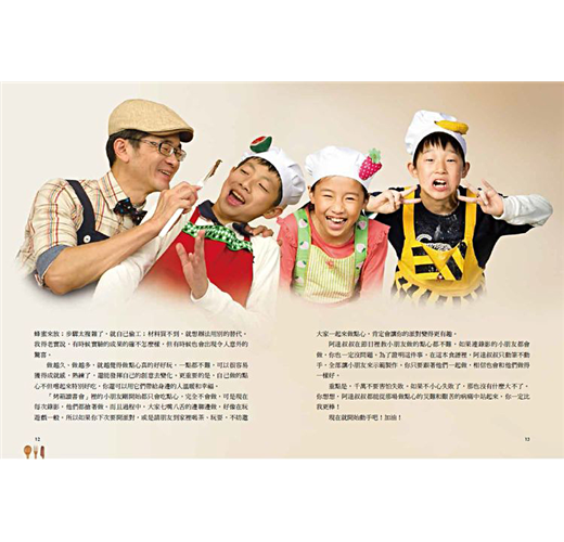 阿達叔叔在節目裡教小朋友做的點心都不難,連錄影的小朋友都會做,讀者也一定沒問題。為了證明此事,在這本食譜裡,阿達叔叔只動筆不動手,全部讓小朋友來示範製作。只要跟著他們一起做,相信會和他們做得一樣好。