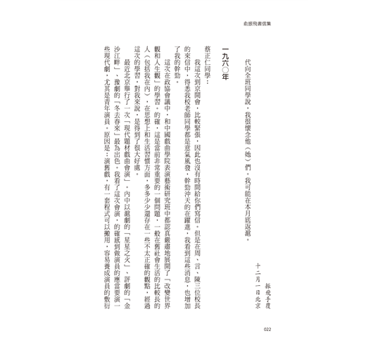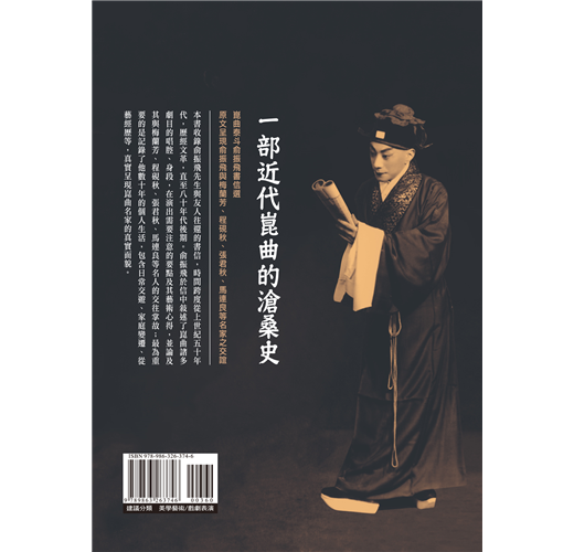本書收錄俞振飛先生與友人往還的書信,時間跨度從上世紀五十年代,歷經文革,直至八十年代後期。俞振飛於信中敘述了崑曲諸多劇目的唱腔、身段,在演出需要注意的要點及其藝術心得,並論及其與梅蘭芳、程硯秋、張君秋、馬連良等名人的交往掌故;最爲重要的是記錄了他數十年的個人生活,包含日常交遊、家庭變遷、從藝經歷等,真實呈現崑曲名家的真實面貌。