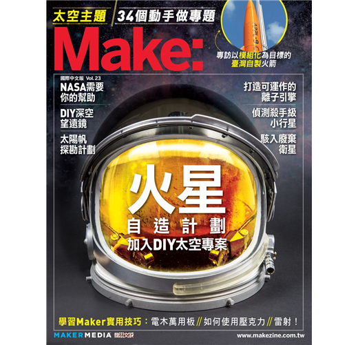 《MAKE》是一本協助讀者將「自己動手做」DIY的概念,運用到生活中所有科技領域的雜誌書,內容涵蓋範圍包括:汽車、玩具、電子、機器、樂器、攝影、木工家具與戶外活動等產品的製作。此外,每本《MAKE》都有著令人興奮且多樣化的專題,讓你隨時隨地都能發揮創意充分活用各種科技,盡情享受改造、破解與重組科技的成就感。