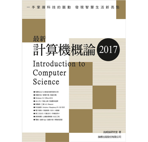 本書採用最新的硬體、週邊相片, 以精緻的立體示意圖解說原理, 破除傳統計概書籍內容生硬、版面枯燥乏味的印象, 並加入許多實用的科技產品經驗、電腦操作技巧以及網路應用觀念。針對最新資訊科技潮流的發展, 我們也特別介紹方興未艾的創客運動、電競遊戲、O2O 行動商務、大數據, 還有商機無限的物聯網應用等。內容不僅符合老師的教學安排, 更能滿足莘莘學子的知識需求。