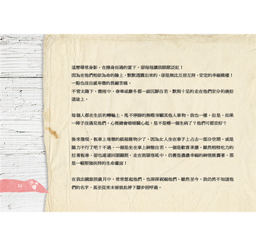 因為在他們相依為命的臉上,默默透露出來的,卻是無比互信互持、安定的幸福模樣!一點也沒自感卑微的畏縮苦痛。