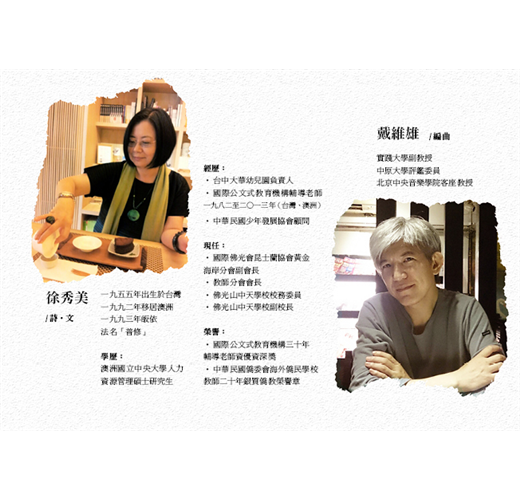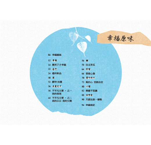 「簡單的幸福」《簡單的幸福》由旅澳教育家徐美秀創作,知名音樂人戴維雄編曲,佛光山心培和尚唱頌,一套清新、會心、深呼吸的心靈饗宴音樂書。