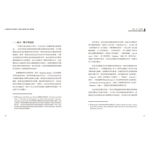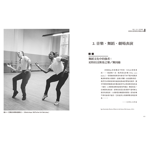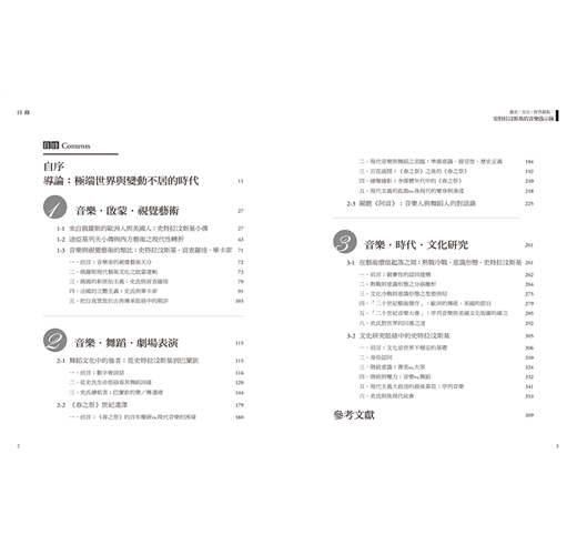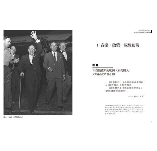 本書共分3章節,從史特拉汶斯基的音樂啟蒙,與畢卡索等藝術家的交往,歷經戰後的影響與風格轉變,乃至於晚近的身分認同等議題做全方面的探討。
