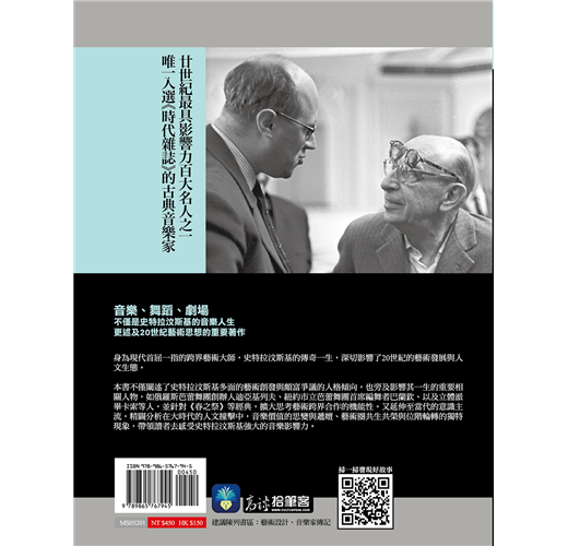由於現代社會日益世俗化、民主化、電腦化和消費化,過去門禁森嚴的古典音樂學術界,勢必得對日益嚴峻的大眾文化要求有所回應,而造就史特拉汶斯基的音樂能廣受普羅大眾歡迎的原因,值得我們深入探討。書中不只闡述史特拉汶斯基的生平,並引介影響其一生的重要藝術家;全面探討史特拉汶斯基的音樂起源,針對世紀經典作品《春之祭》、《阿貢》做深入的跨界討論,更精闢分析史特拉汶斯基的文化影響力。