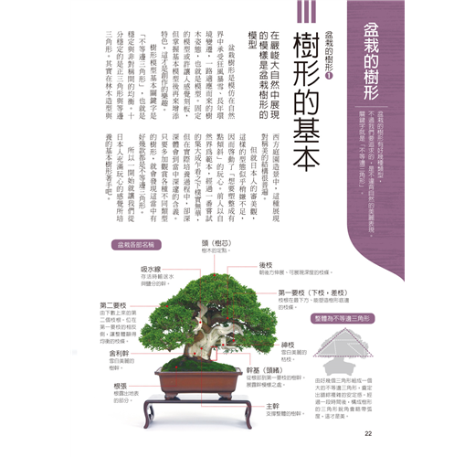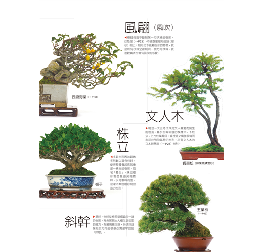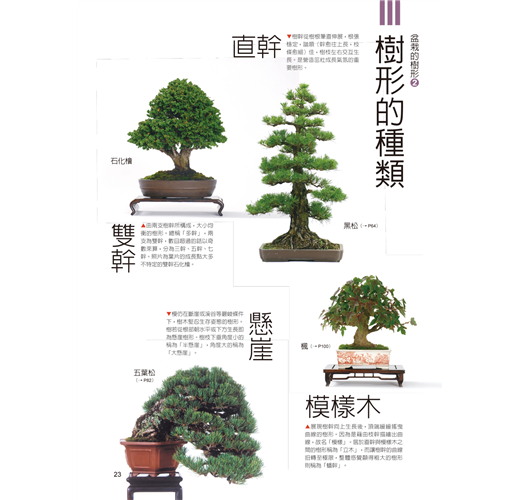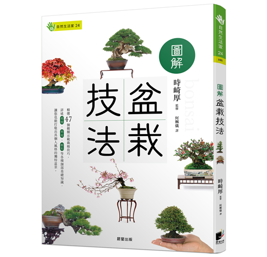 書中也精選47個樹種示範栽植技巧,詳述移植、剪枝、樹形等各種細部基礎知識,試著動手做,您也能打造出具個人風格的獨特盆景喔!