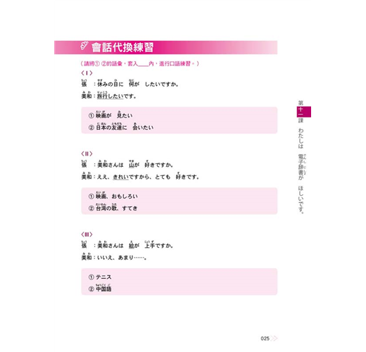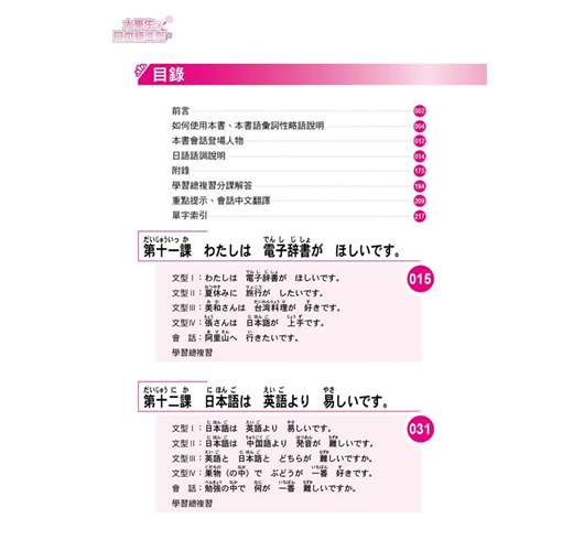 目標→句型→語彙→會話→練習→延伸閱讀,學習循序漸進,提升日語實力!