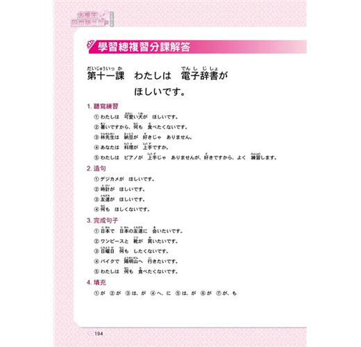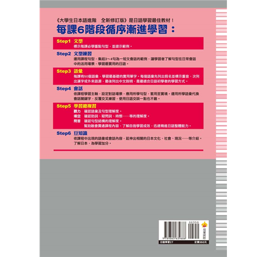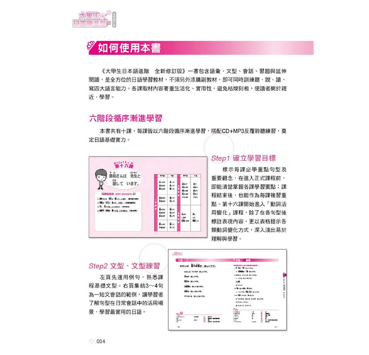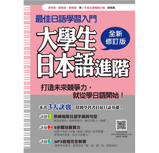 《大學生日本語進階 全新修訂版》紮實完整的內容,是獻給日語初級學習者邁向中級程度的最佳日語學習書!