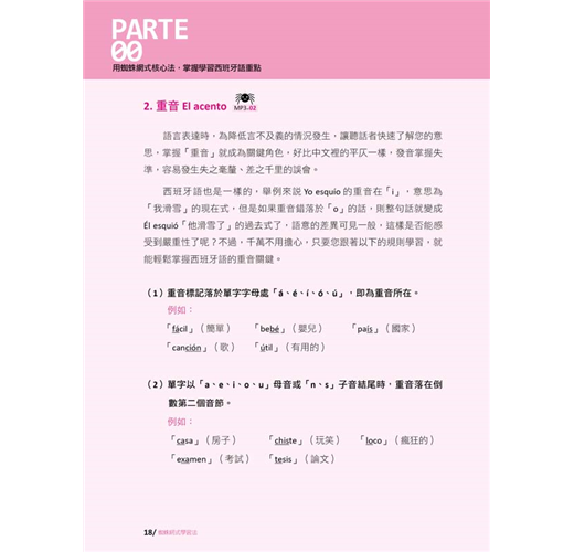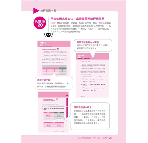特色1:從認識西班牙語、發音、單字到例句,蜘蛛網式脈絡學習,最好記!