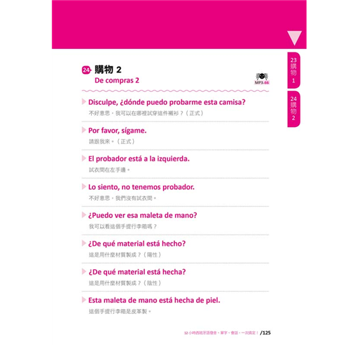 不管是發音、單字、例句或是會話,皆附有測驗練習,學完馬上測驗,立即看出學習成效,讓你實際應用西班牙語!