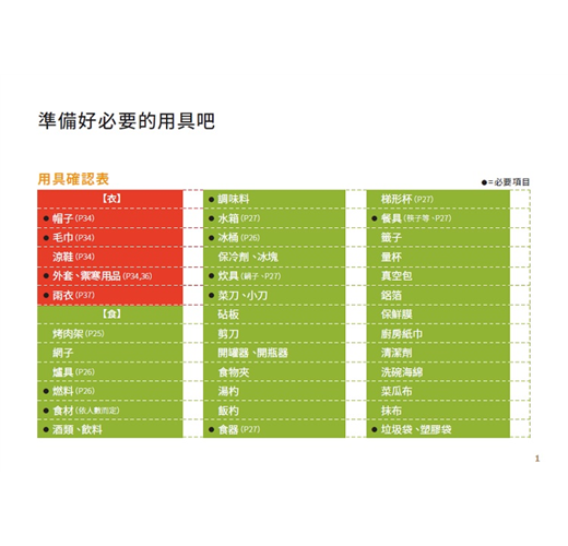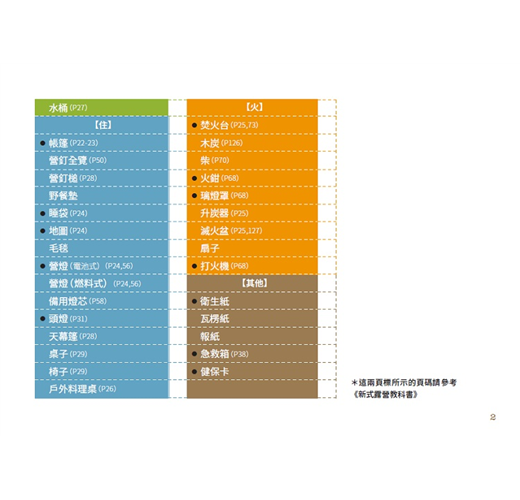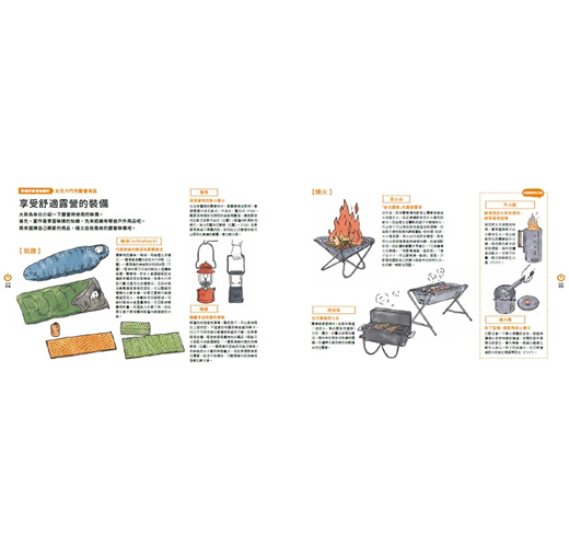 還不習慣露營的人可參考書中的介紹,帶上必要的用具。