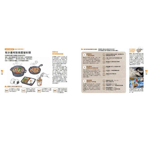 雖然已經非常享受且習慣在露營時做各式料理,但還是能從書中學到更加簡單方便的料理方式!比如先將義大利麵與水放入密實袋中吸飽水,不到三分鐘就可將麵煮好了!真是一本實用且簡單易懂的露營書呢!