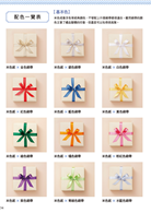 *附配色一覽表,緞帶與包裝紙的顏色搭配出不同風格,通通列出,省時省力~