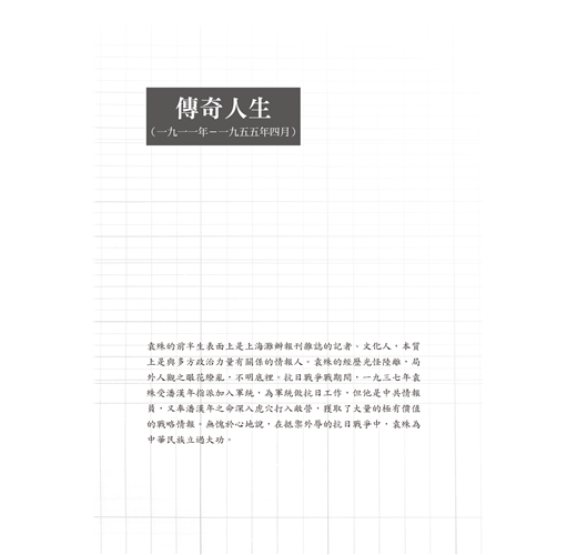 本書由其長子曾龍親自撰述,一次還原袁殊這位五面間諜的真實樣貌!