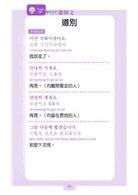 本書涵蓋四大學習單元,日常生活篇、旅遊篇、交通篇、基礎單字篇,首創使用「中文」的發音模式,同時搭配羅馬拼音的發音輔助,協助你克服一開始學習韓語發音的困難。