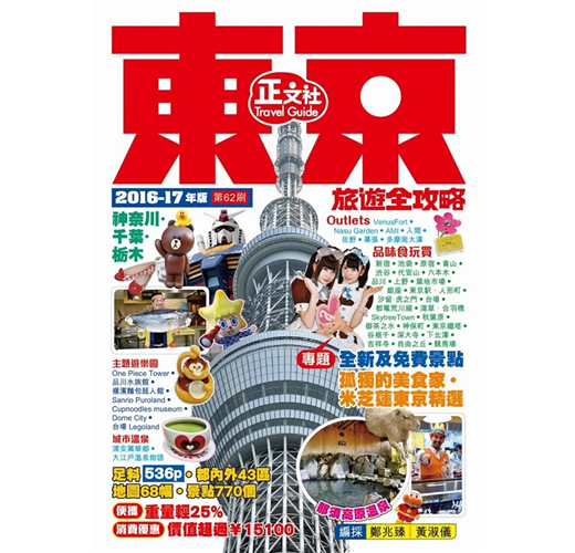 本刷審視全書,重編寫及修訂舊章節,並更新2016年4月起交通資料,新增One Piece Tower、假日市集Tokyo City Flea Market、御茶之水、神保町等東京文化區,設超過10家持書可享的消費優惠,一書在手,玩盡東京!