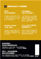 「創業只有1%的成功率,卻有99%的陣亡率!」如果你也想擠進1%的成功之路、告別朝九晚五的生活,一定要擁有這本書!