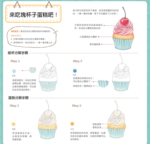 教學-來吃塊杯子蛋糕吧!(畫出奶油的立體感及紙杯的皺褶感)