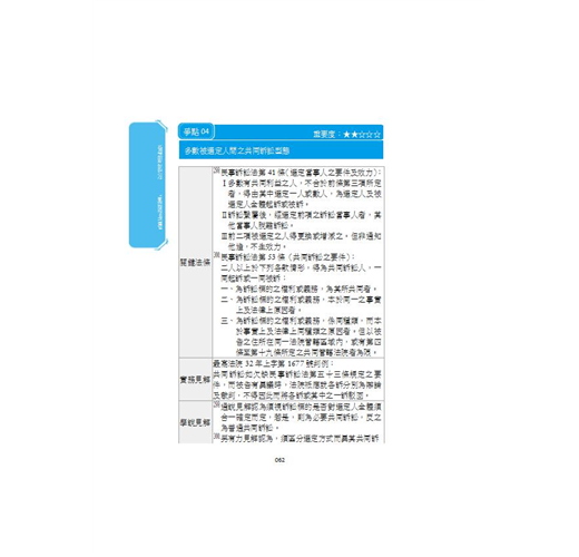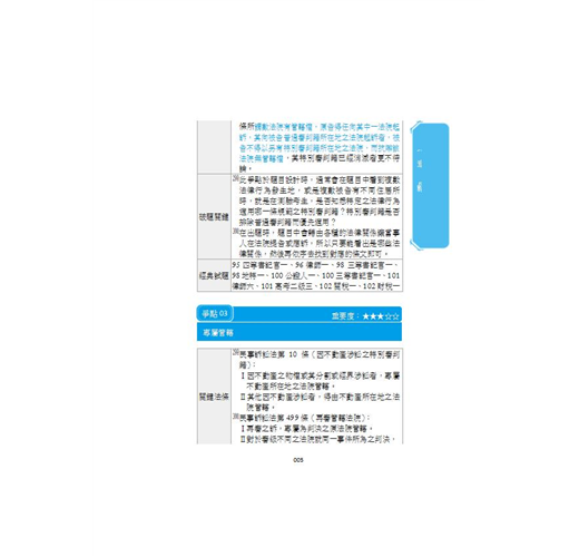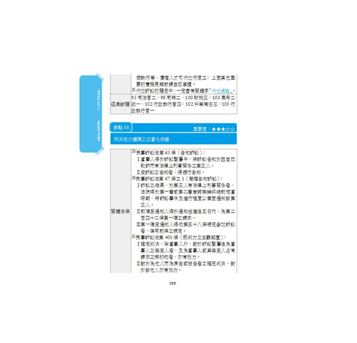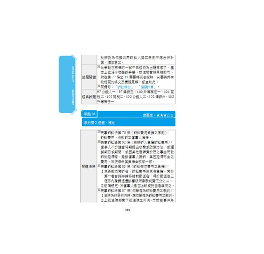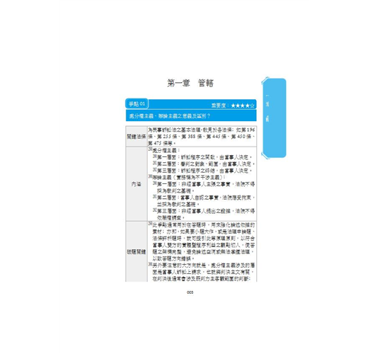 使用功效 藉由爭點獨立化方式使讀者能以在考前以最短時間複習完本科重點。