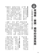 本書正是根據以上變化,擴充《圖解 解讀東協的實力》的內容,加入各種情勢變化的更新資訊,重新針對東協所存有的各項風險加以充分解說。另外,有鑑於讀者們所關注的議題更加廣泛,書中更新增了關於CLM的一章。至於汶萊,也在專欄中有所提及,因此本書可說是涵蓋了東協十國,進行整體通盤的介紹。