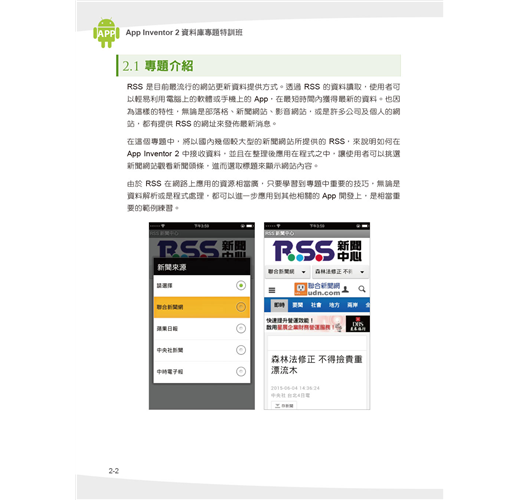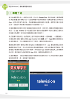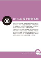 ■App專案包含:「英文單字王、RSS新聞中心、YouBike我的微笑單車、空氣品質即時監測、發票對獎王、台幣匯率計算機、朋友在哪兒、QRCode線上報到系統、即時評測回饋系統,以及雲端POS訂購系統」等強大主題。