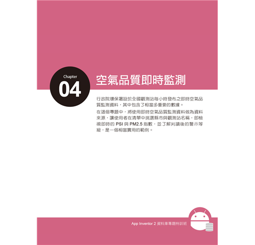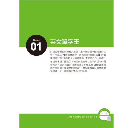 本書適用無程式設計經驗,想打好App Inventor基礎者,內容為基礎觀念的建立+實用小範例,可固定時數紮實學習。