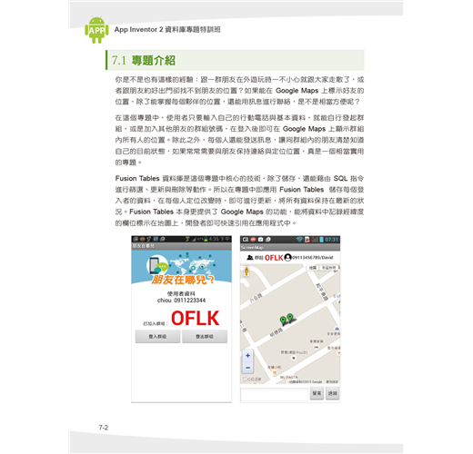這個專題使用了Fusion Tables資料庫,除了能省略架設和管理資料庫伺服器的困擾,還能夠結合Google Maps的功能,立即掌握朋友們的定位與狀態,是一個相當精彩而實用的範例。
