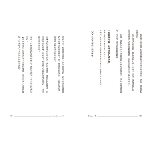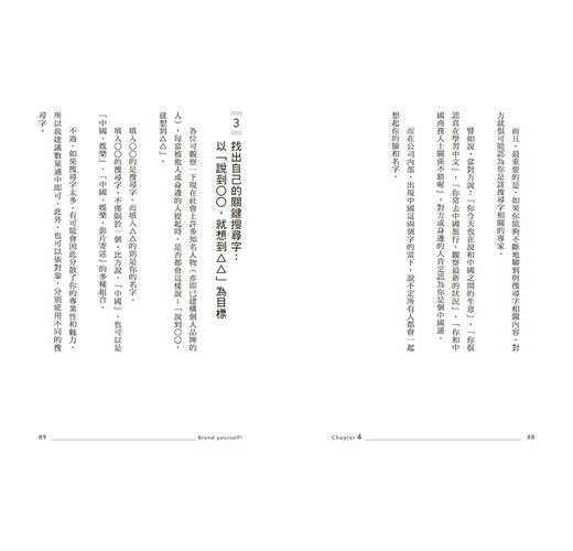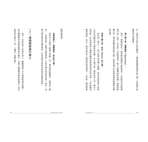 他針對如何塑造個人品牌,打造「被搜尋」的自己,淺顯易懂地彙整了內容。從許多案例分析,不管是找工作、換工作、升遷、被提拔為主管、成為專案負責人、被上司託付新業務等等,教導你以具體的方法,找出自己的獨特賣點和強項,建立最具魅力的個人品牌!