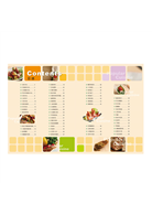 EX:泰式炸蛋鳳梨沙拉、鮭魚酥皮、黃瓜起司卷、越式芒果酸甜醬佐麵包、鮮蝦蒸蛋、XO醬蛋卷、藍帶起司豬排、辣子雞丁、鹽焗蝦、清燉猴頭菇湯。