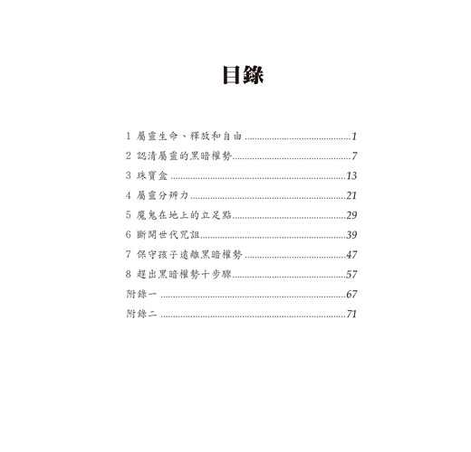 本書將使你認識屬靈的黑暗權勢,保守孩子脫離黑暗權勢的攪擾,破除世代的咒詛,加強屬靈的分辨力,並逐步為你的家庭、土地和產業禱告。