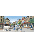 白熊再次踏上旅途,街道上充滿忙碌移動的人群,發出奇怪聲音的汽車對著白熊按喇叭,白熊應該要去的地方在哪裡呢?