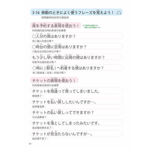 本書將日本旅遊分成〈招呼〉〈空港〉〈移動〉〈住宿〉〈購物〉