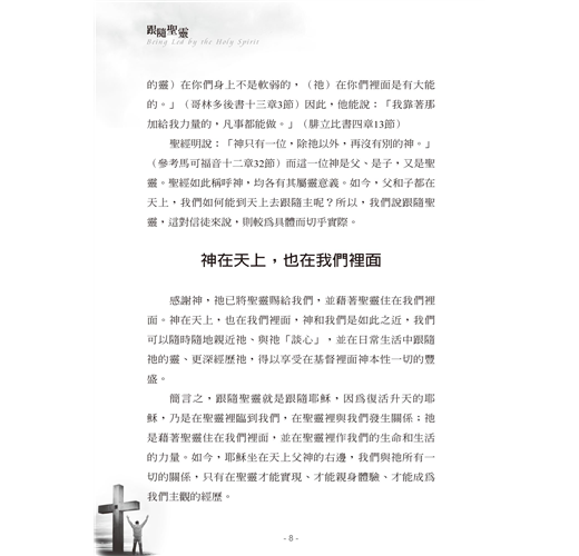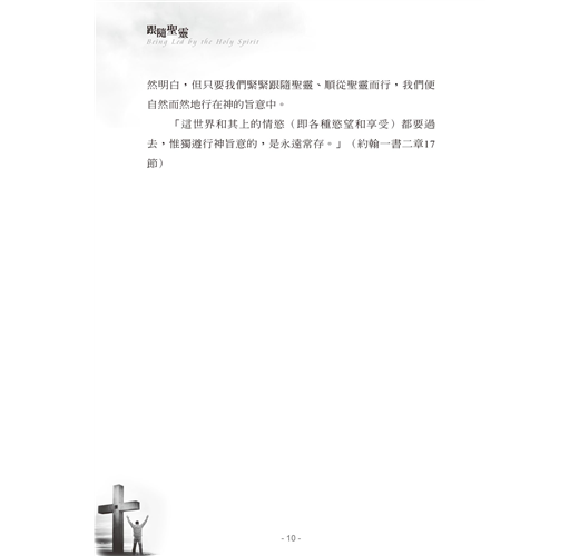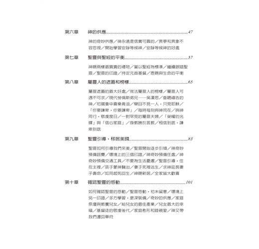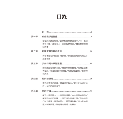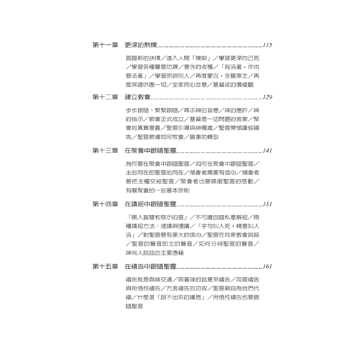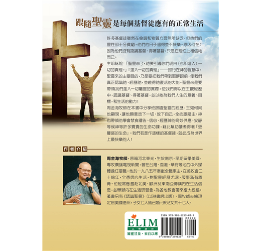 周金海牧師在本書中分享他跟隨聖靈的經歷:主如何向他顯現,讓他願意放下一切、放下自己,全心跟隨主;神也帶領他學會禁食禱告、信心、經歷神的奇妙供應、安靜等候神等許多寶貴的生命功課,藉此幫助讀者得著「更豐盛的生命」。我們若是作這樣的基督徒,就必成為世界上最快樂的人!