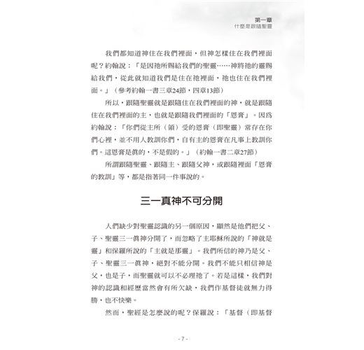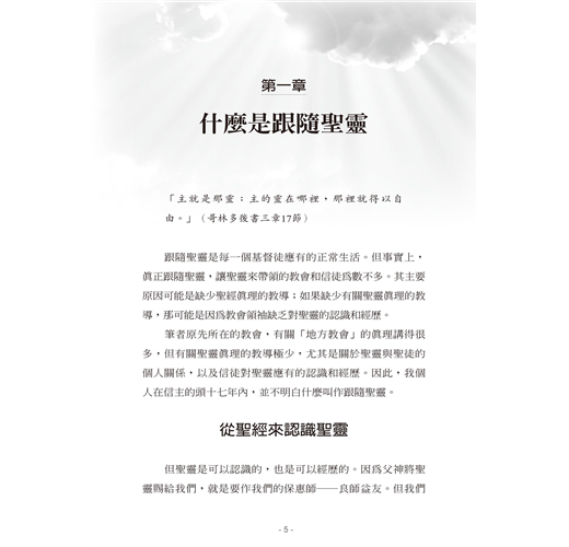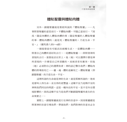 跟隨聖靈是每個基督徒應有的正常生活。許多基督徒雖然在金錢和物質方面無所缺乏,但他們的靈性卻十分貧窮,他們的日子過得並不快樂。原因何在?因為他們沒有認識基督、得著基督,只是在理性上相信衪而已。