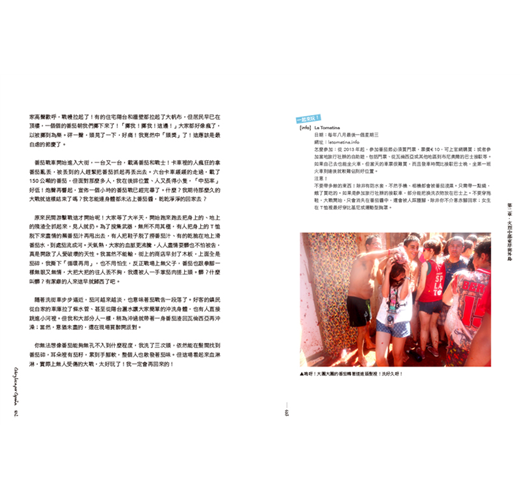 我拒絕網路上的道聽塗說,我要自由去走、去拍攝和體驗所有的地方和節慶;不在乎語言的不同和能力,和遇上的西班牙人真切的聊天、聆聽,我希望把他們的想法帶給讀者,認識我喜歡的西班牙。