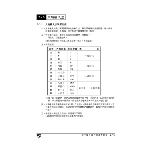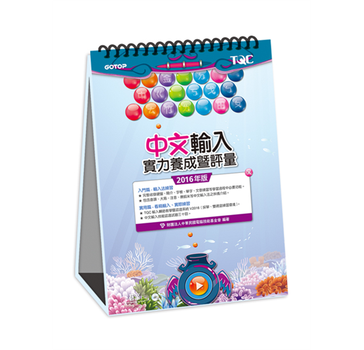 *本書包含倉頡、大易、注音、嘸蝦米等中文輸入法之拆碼介紹。更可透過「TQC輸入輔助教學暨認證系統 V2016」(採單、雙視窗練習環境)上機實際練習,學習效果百分百。