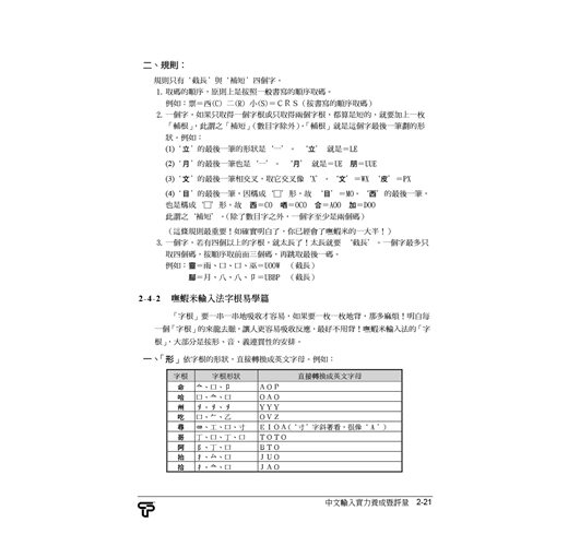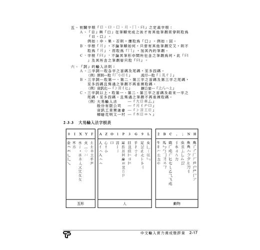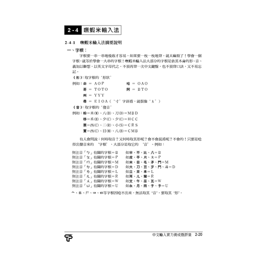 *包含倉頡、大易、注音、嘸蝦米等中文輸入法之拆碼介紹。