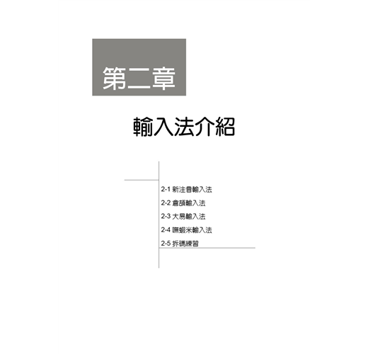*全書依學習歷程分為兩大篇幅:入門篇-輸入法練習、實用篇-看稿輸入,採循序漸進方式幫助讀者成為中文輸入高手。
